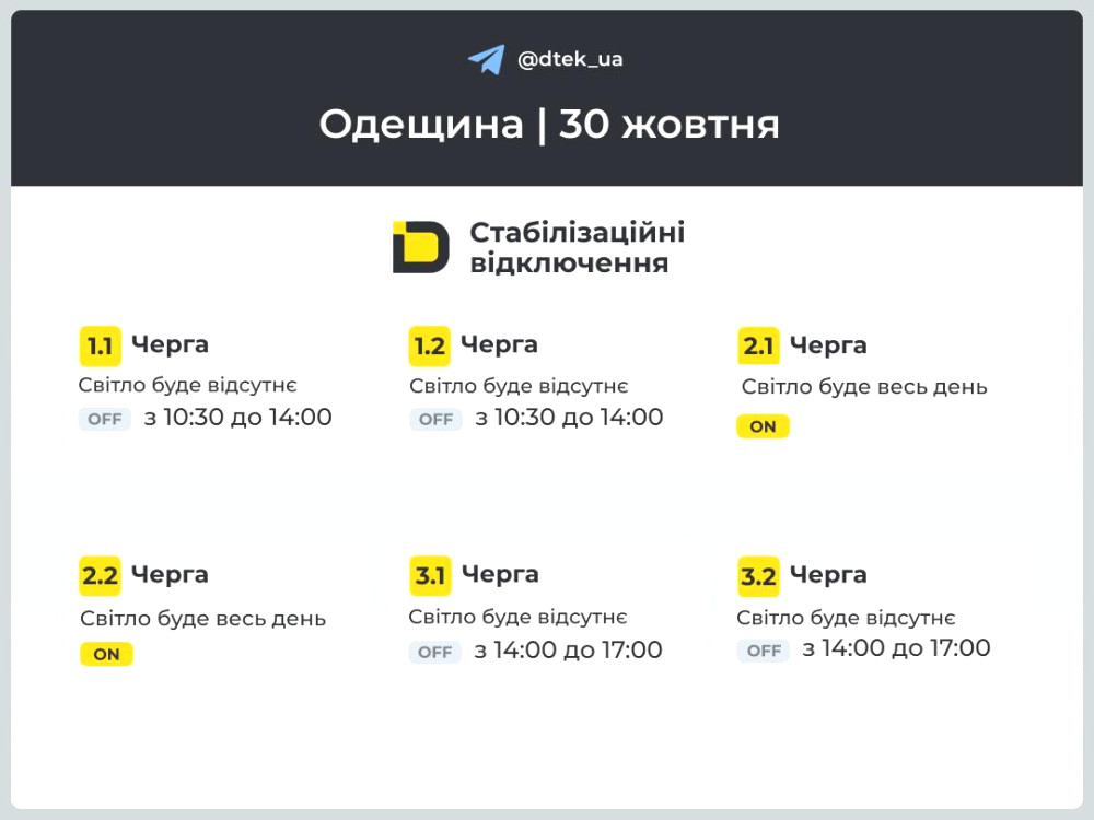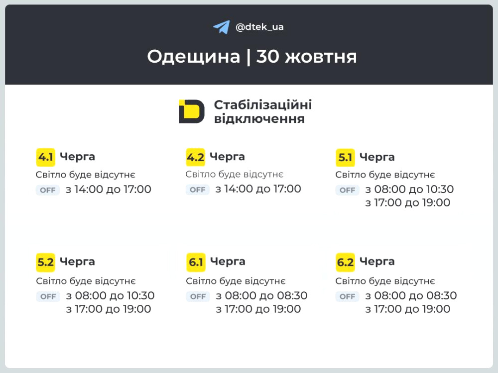 У разі змін, актуальна інформація буде доступна в телеграм-каналі ДТЕК.